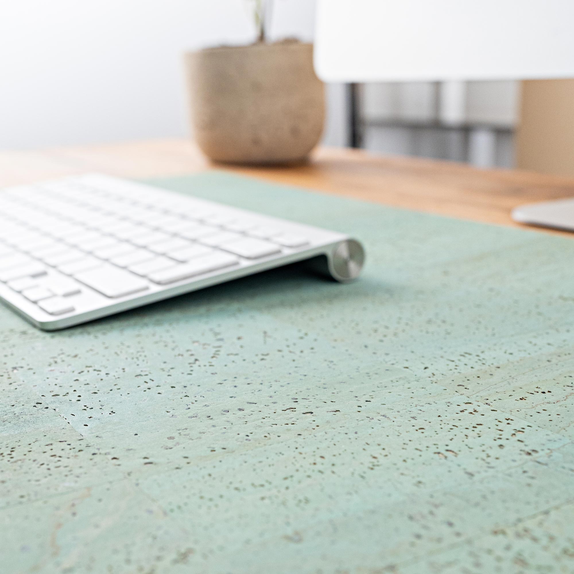 Schreibtischunterlagen aus Korkleder sind etwas dicker als die anderen Materialien. Die Oberfläche fühlt sich sehr glatt an.